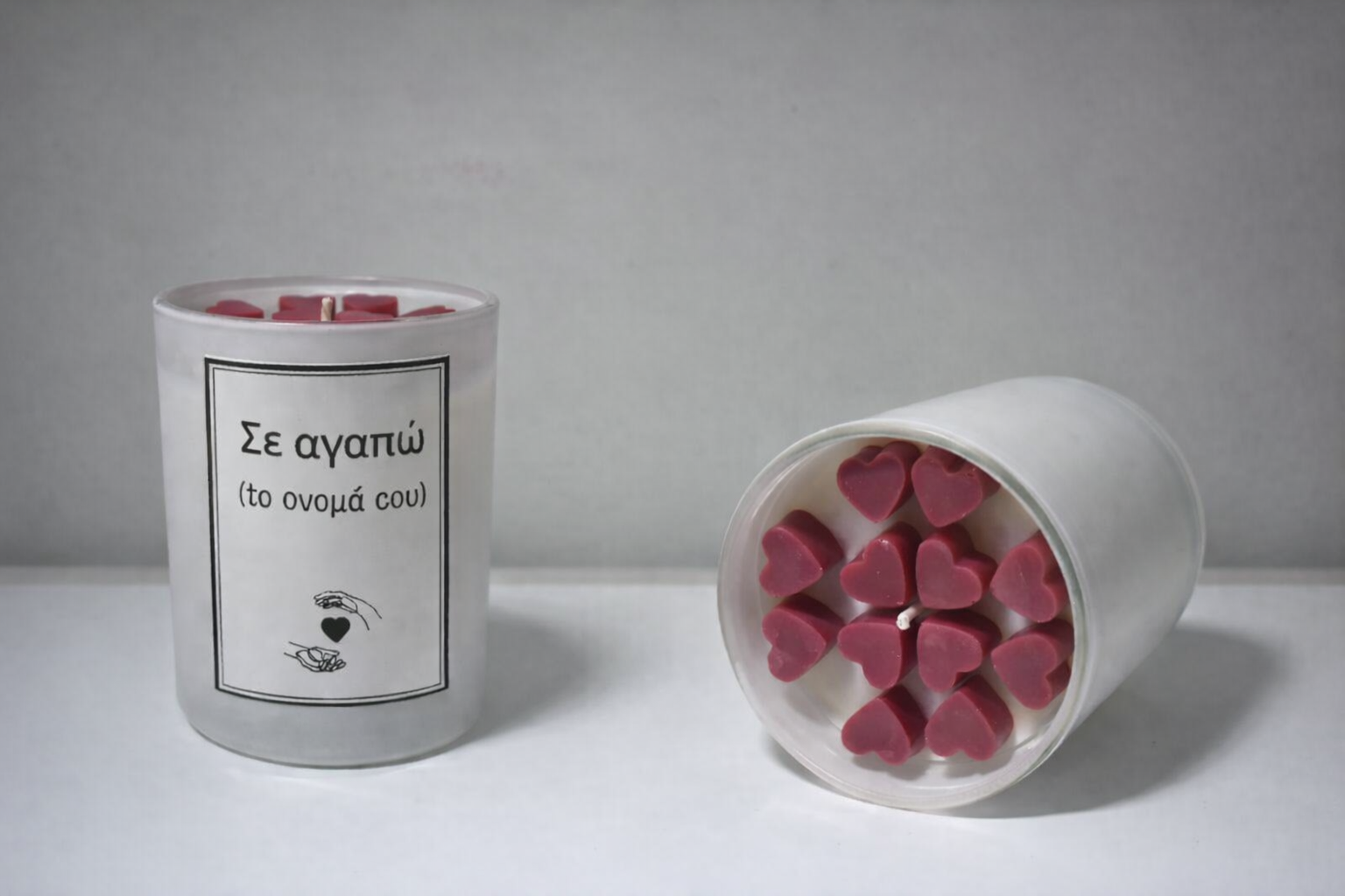 Το χειροποίητο κερί “Σε αγαπώ” συνδυάζει ρομαντική αισθητική με το εκλεπτυσμένο άρωμα Παρίσι (Paris), εμπνευσμένο από τη γοητεία και την κομψότητα της πόλης του φωτός.